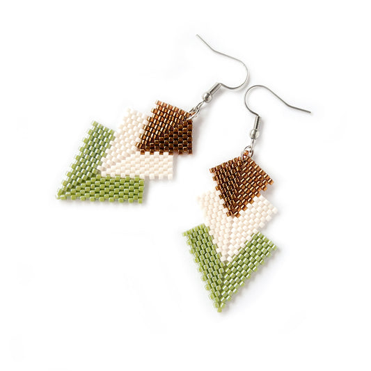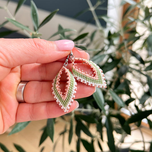 Cercei frunza din margele crem, roz si verzi