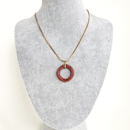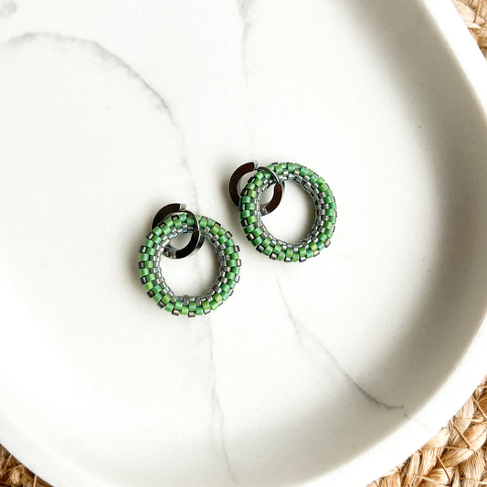 Colier cu pandantiv cerc din margele verde petrol si gri