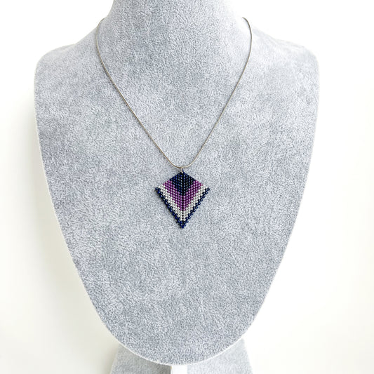 Cercei geometrici si pandantiv din margele mov, bleumarin si gri argintiu