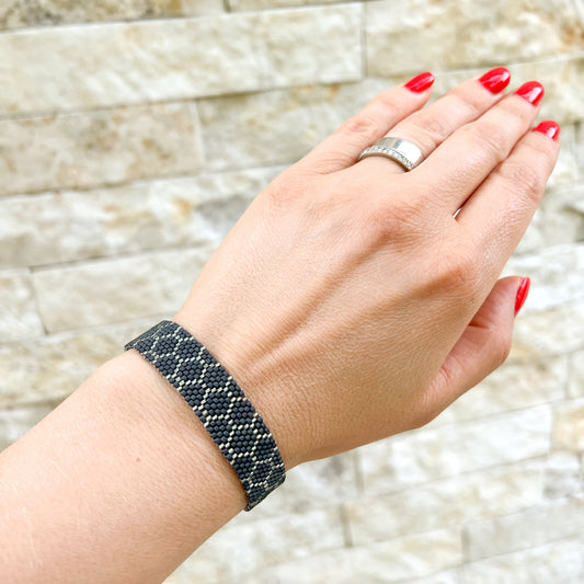 Bratara tesuta din margele cu hexagoane gri antracit