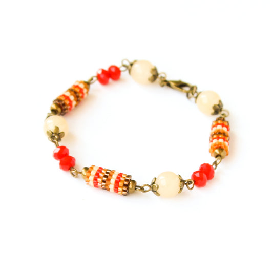 Bratara din margele maro, bej si rosu aprins