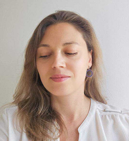 Cercei cercuri cu surub din margele mov, bleumarin si argintii