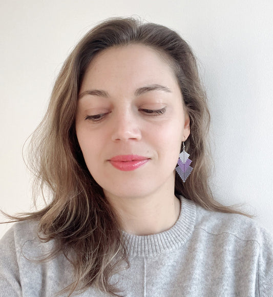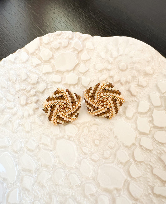 Cercei geometrici din margele maro, portocaliu si galben chihlimbar