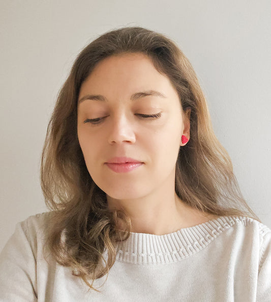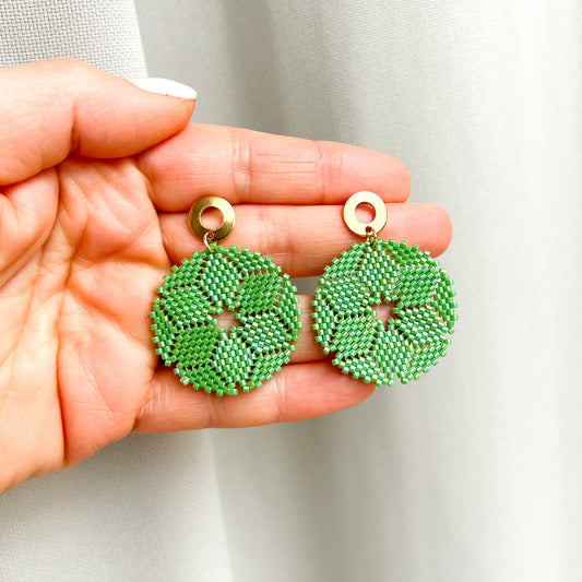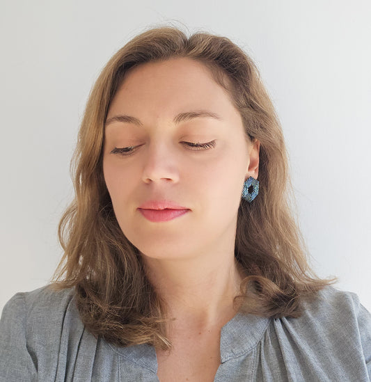 Cercei hexagonali cu surub din margele gri inchis metalizat