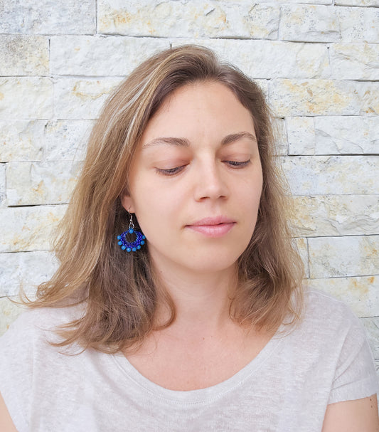 Cercei evantai din margele albastru cobalt si turcoaz