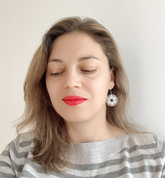 Cercei fulg de zapada din margele albe si gri