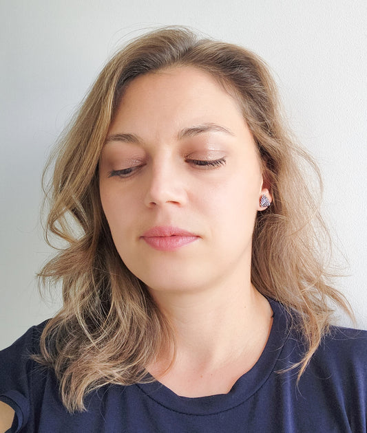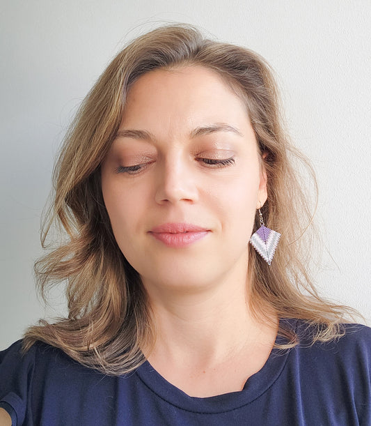 Cercei geometrici din margele mov si gri