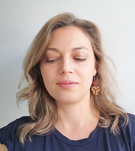 Cercei statement din margele visinii si aurii