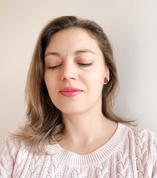 Cercei triunghiulari visiniu-trandafiriu metalizat