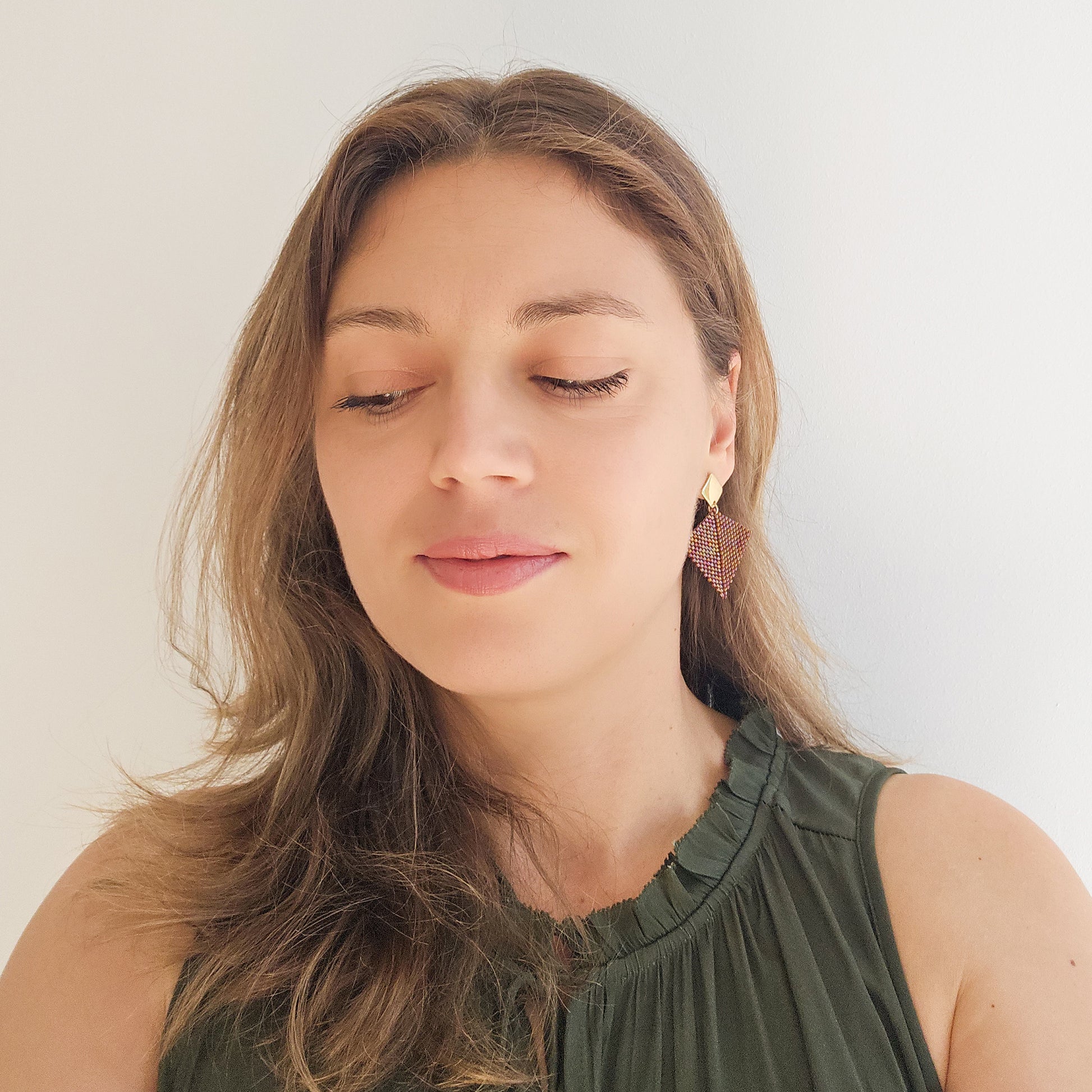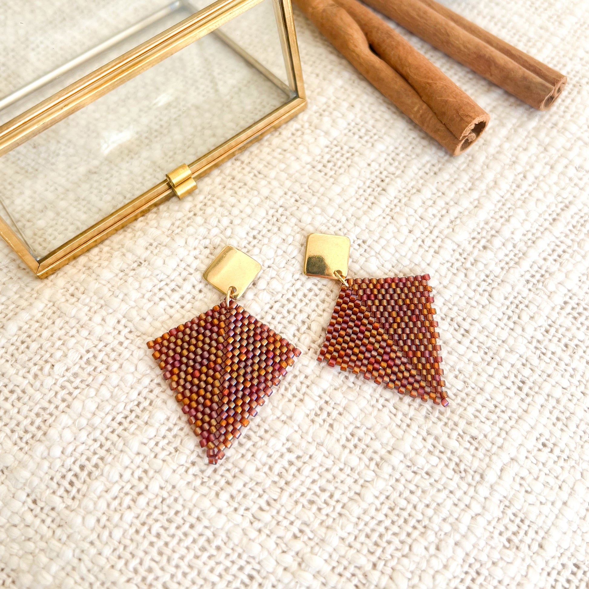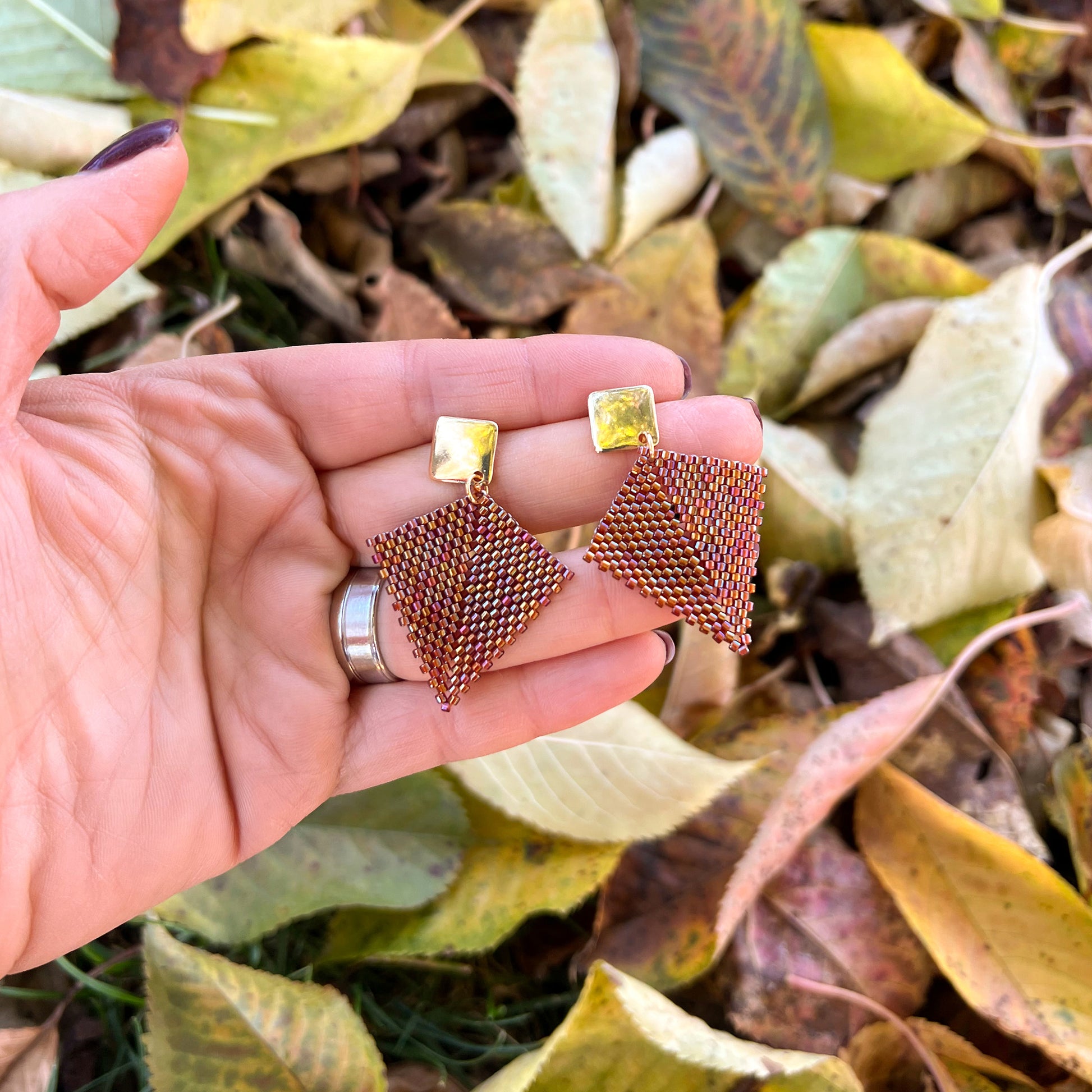 Cercei eleganti din margele chihlimbar tesuti din margele de sticla Miyuki Delica pe fir de nailon